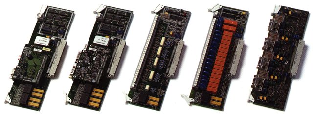 (od lewej: Interbus-S, Profibus-DB, Optoizolator, Karta przekaźników,